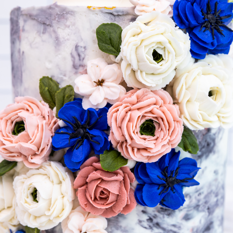 Expand your artistry in this two-day exploration of advanced buttercream and mixed-media floral techniques. Build on foundational piping skills while mastering Italian and American buttercreams, wafer paper, and buttercream transfers. Students learn to compose dimensional floral designs that balance color, harmony, and movement — merging timeless craftsmanship with modern design. (2 days — Intermediate, Prerequisite: Course 1 or equivalent experience)
